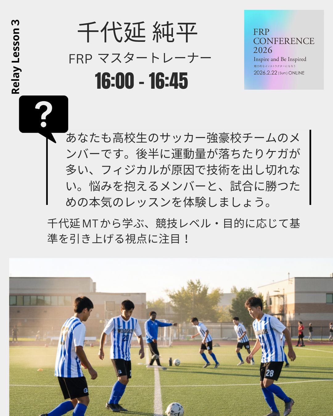 3つのそれぞれ設定の違う想定のレッスンに、FRPインストラクターとしてではなく、参加者の視点でご参加ください!