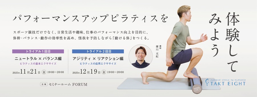運動学・解剖学的根拠に基づいたピラティスを体感しながら学べるワークショップです。